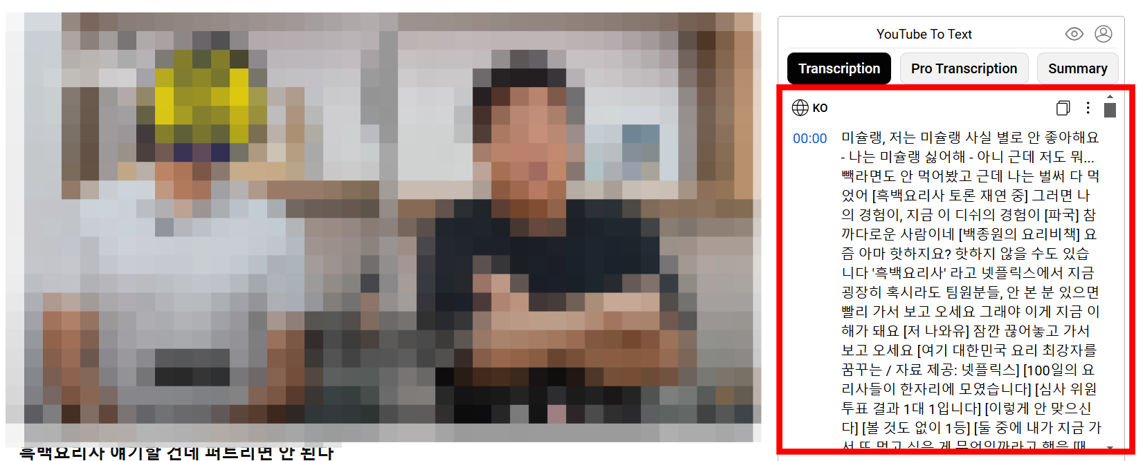 - 유튜브 동영상 자막 추출을 위한 사용 준비 완료.