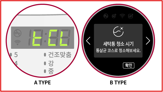 A1. 아니요, tCL 알림은 고장 코드가 아닙니다. 이는 세탁조에 이물질이 쌓여 통세척이 필요한 시점이라는 알림입니다. 주기적으로 세탁조 청결을 유지하기 위한 안내로, 알림이 표시되었다면 통세척을 실행해 주세요.