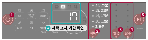 2. [세탁] 버튼을 눌러 원하는 세탁 시간을 선택하세요. (*시간표시창에서 설정 시간 확인 가능)